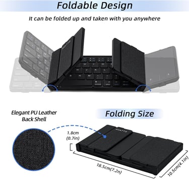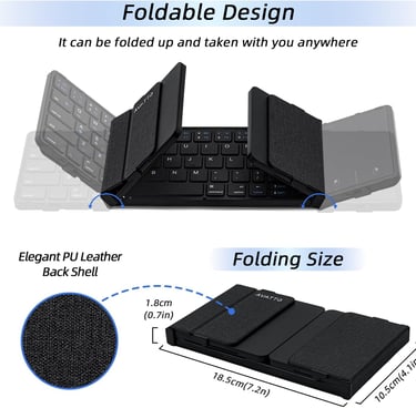 Tolesum Clavier Bluetooth Pliable, Taille réelle Clavier Tactile sans Fil Rechargeable Touchpad Connectez 3 Appareils pour Tablette, Téléphone Portable, PC , iOS , Android , Ipad – Noir
