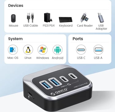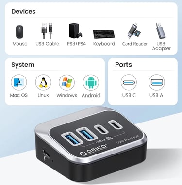ORICO – Station d'accueil Hub USB 3.2 Type C 10Gbps, commutateur de séparation, prise multi-ports USB-A Gen2 pour Surface Macbook ordinateur portable 3.0