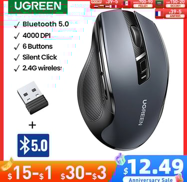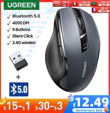 UGREEN Souris sans fil Bluetooth 5.0, 4000 dpi 6 boutons POUR Tablette ordinateur portable PC 2.4g