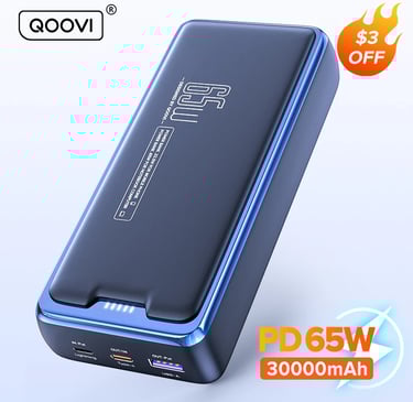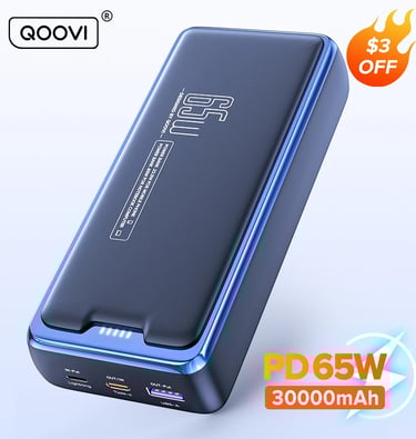 Qwing VI-Banque d'alimentation portable à charge rapide, batterie externe, chargeur pour ordinateur portable iPhone Samsung, capacité de batterie PD 65W, 30000mAh