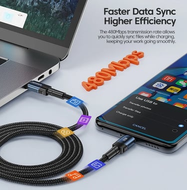 USLION-Câble Micro USB/Type-C magnétique 3A pour recharge rapide et transfert de données