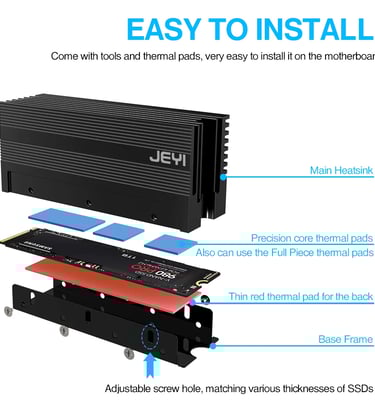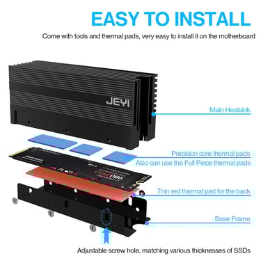 JEYI Cooler II 2280 SSD dissipateur thermique M.2 NVME radiateur en alliage d'aluminium magnésium PC radiateur efficace avec coussin en Silicone thermique