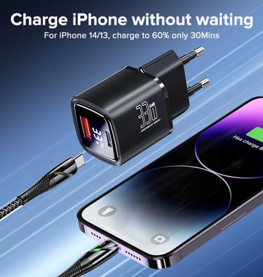 Qwing VI 33W GaN Chargeur USB Type C Adaptateur De Charge Rapide Charge Rapide QC3.0 PD Chargeur Mural USB-C Pour iPhone Samsung Xiaomi iPad